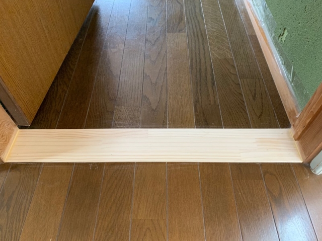 今回は、ドアの敷居を削り、段差解消の工事を行いました。